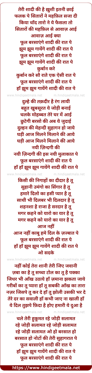 Lyrics of Phool Barsayenge Shaadi Ki Raat Pe - फूल बरसाएंगे शादी की रात पे