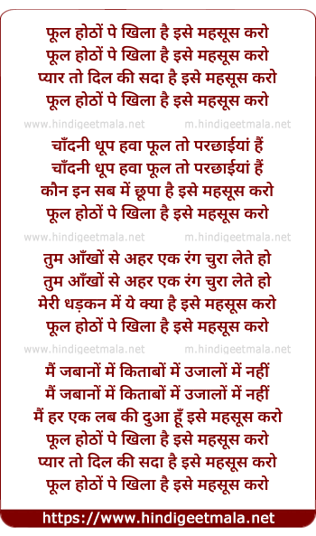 Lyrics of Phool Honto Pe Khila Hai - फूल होठों पे खिला है इसे महसूस करो