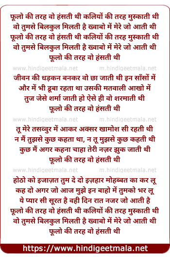 Lyrics of Phoolo Ki Tarah Wo Hansti Thi - फूलो की तरह वो हंसती थी