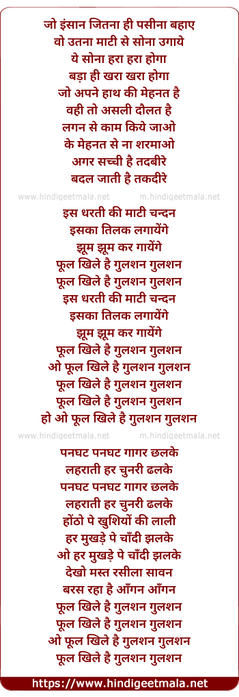 Lyrics of Phul Khile Hai Gulshan Gulshan - फूल खिले है गुलशन गुलशन