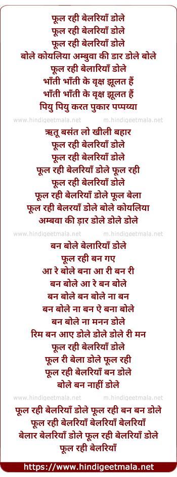 Lyrics of Phul Rahin Belariya Dole - फूल रही बेलरियाँ डोले