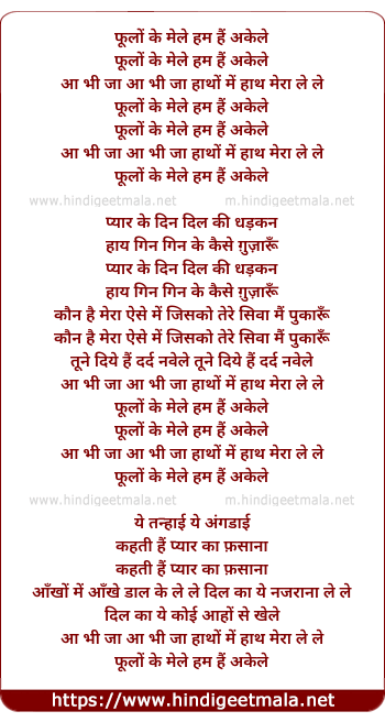 Lyrics of Phulo Ke Mele Hum Hai Akele - फूलों के मेले हम हैं अकेले