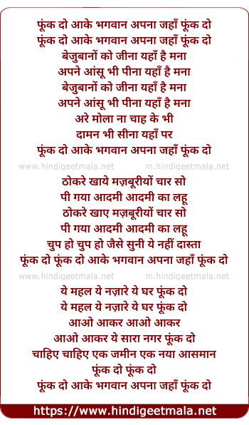 Lyrics of Phunk Do Aake Bhagwan Apna Jahan - फूंक दो आके भगवान अपना जहाँ फूंक दो