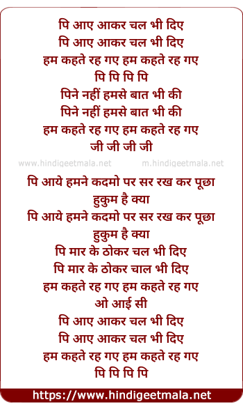 Lyrics of Pi Aaye Aakar Chal Bhee Diye (Male Version) - पि आए आकर चल भी दिए
