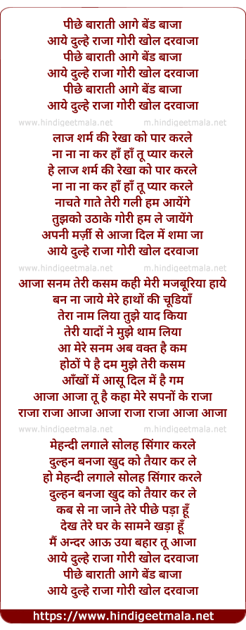 Lyrics of Piche Barati Aage Band Baja Aaye Dulhe Raja - पीछे बाराती आगे बेंड बाजा