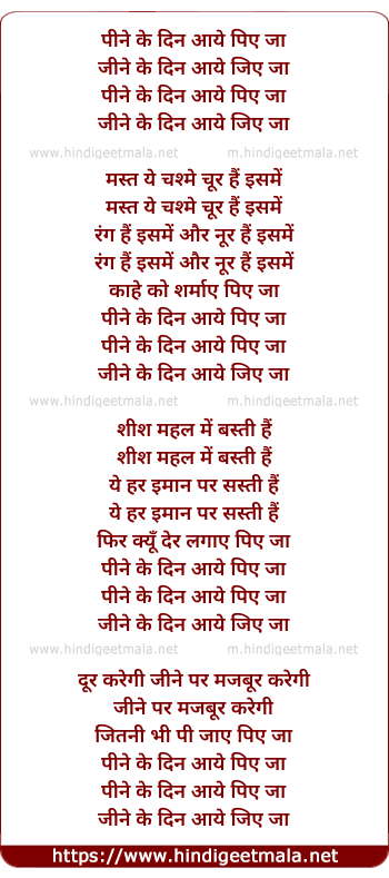 Lyrics of Pine Ke Din Aaye Piye Ja - पीने के दिन आये पिए जा
