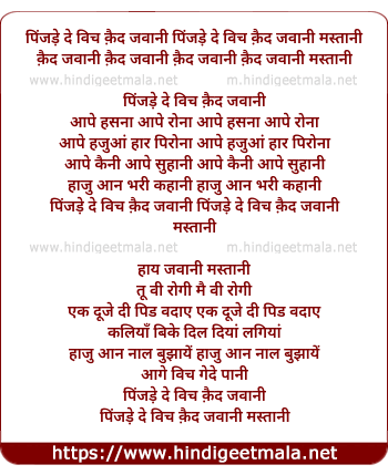 Lyrics of Pinjare De Vich Qaid Jawaani - पिंजड़े दे विच क़ैद जवानी