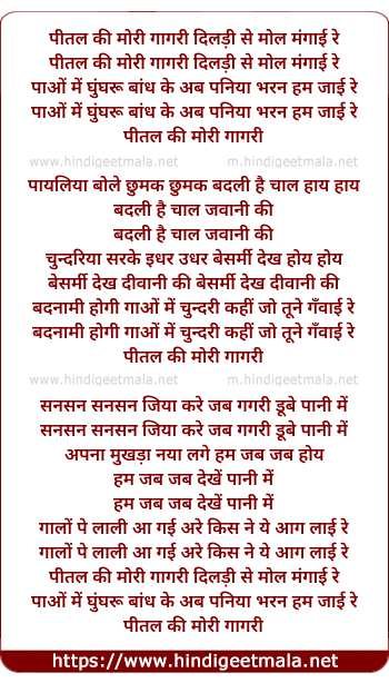 Comments on song "Pital Kee Meri Gagari Dildi Se Mol Mangai Re"