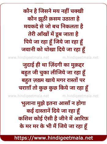 Lyrics of Piya Jaa Raha Hoon - पिये जा रहा हूँ