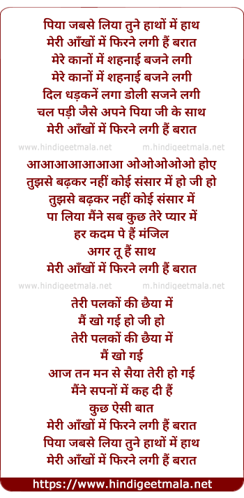 Lyrics of Piya Jab Se Liya Tune Hatho Me Hath - पिया जबसे लिया तुने हाथों में हाथ