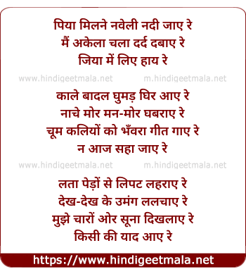 Lyrics of Piya Milane Naveli Nadi Jaaye Re - पिया मिलने नवेली नदी जाए रे