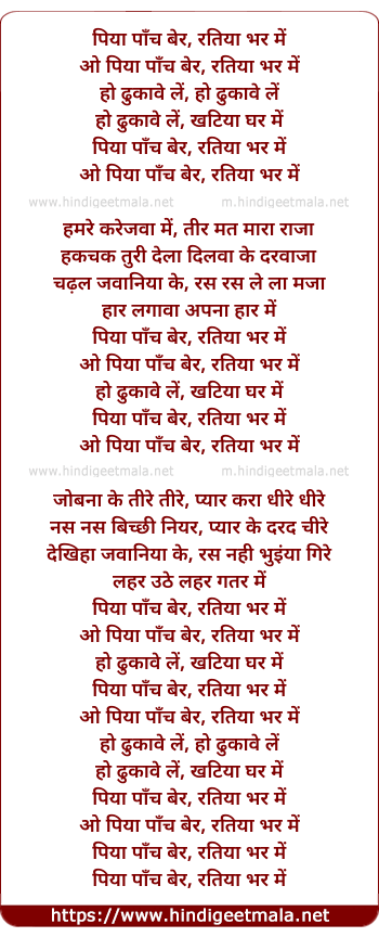 o piya paanch ber, ratiya bhar me