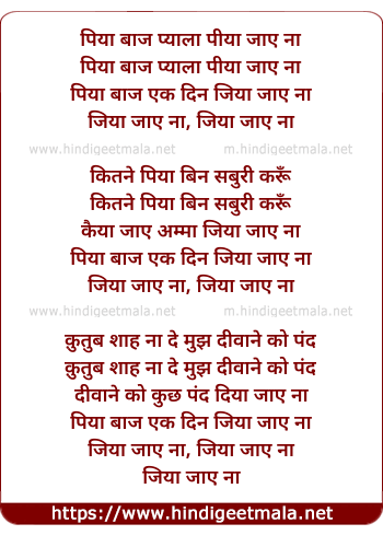 Lyrics of Piya Baaj Pyala Piya Jaye Na - पिया बाज प्याला पीया जाए ना