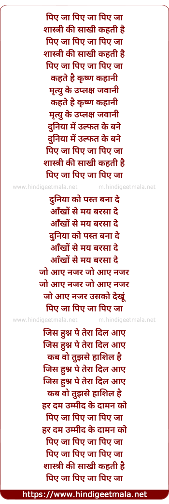 Lyrics of Piye Ja Piye Ja Piye Ja - पिए जा पिए जा पिए जा