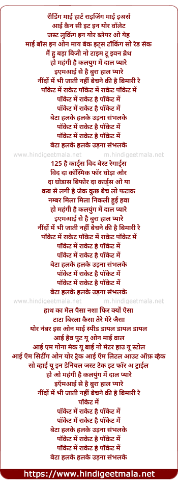 Lyrics of Pocket Mein Rocket - पॉकेट में राकेट
