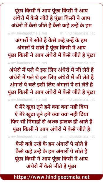 Lyrics of Poochha Kisi Ne - पूंछा किसी ने आप