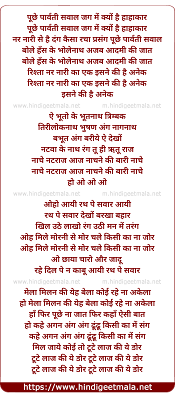 Lyrics of Poochhe Parvati Sawaal Jag Me - पूछे पार्वती सवाल जग में
