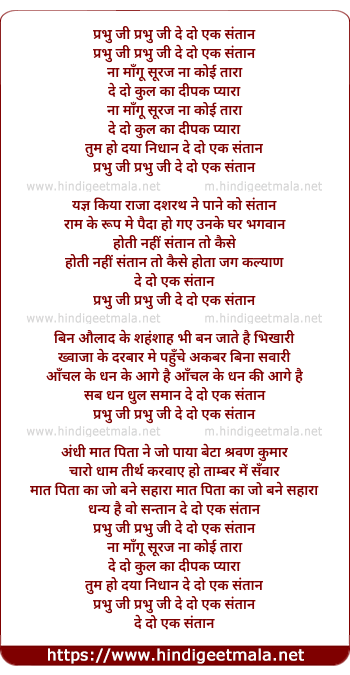 Lyrics of Prabhuji De Do Ek Santaan - प्रभु जी दे दो एक संतान