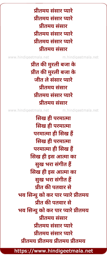 Lyrics of Preetmay Sansar Pyare - प्रीतमय संसार प्यारे