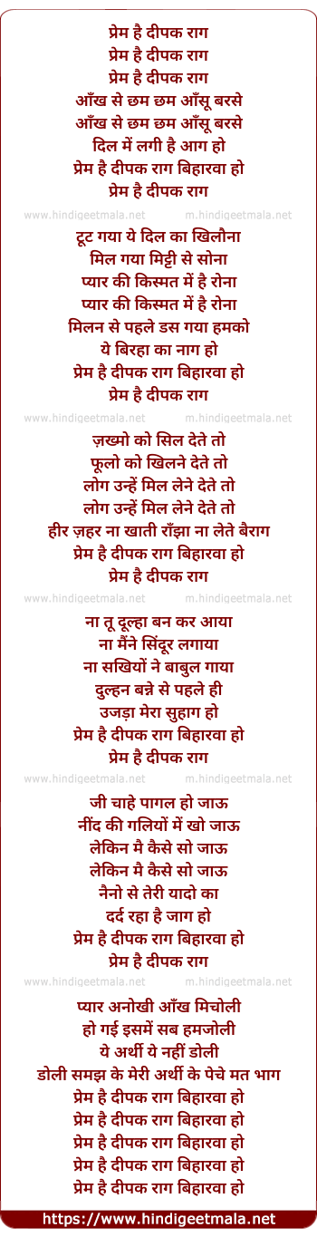 Lyrics of Prem Hai Deepak Rag - प्रेम है दीपक राग