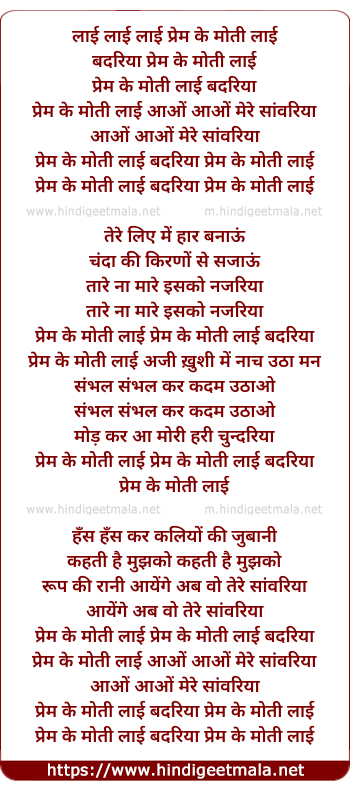 Lyrics of Prem Ke Moti Layi - लाई लाई लाई प्रेम के मोती लाई