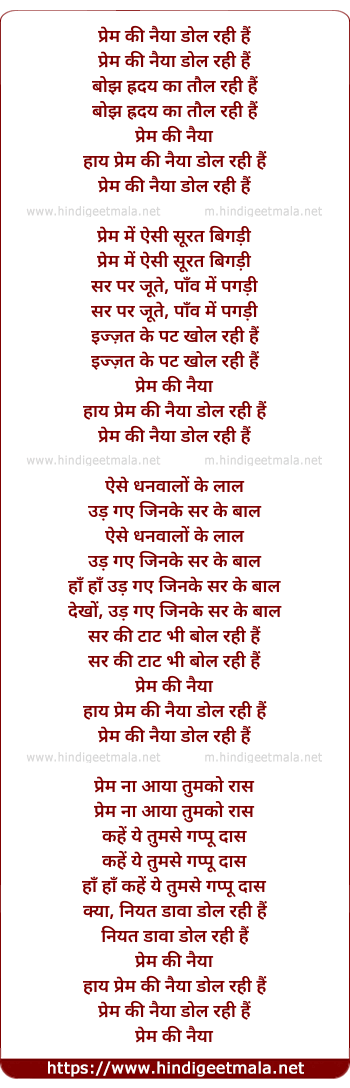 Lyrics of Prem Ki Naiyya Dol Rahi Hai - प्रेम की नैया डोल रही हैं