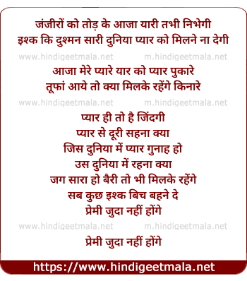 Lyrics of Premi Juda Na Honge (Part-2) - जंजीरों को तोड़ के आजा यारी तभी निभेगी