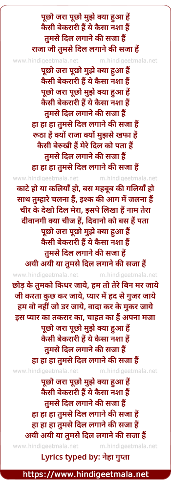 Lyrics of Puchho Zara Puchho Mujhe Kya Hua Hai - पूछो जरा पूछो मुझे क्या हुआ हैं