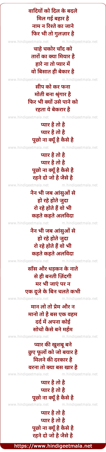 Lyrics of Pyaar Hai Toh Hai - प्यार है तो है