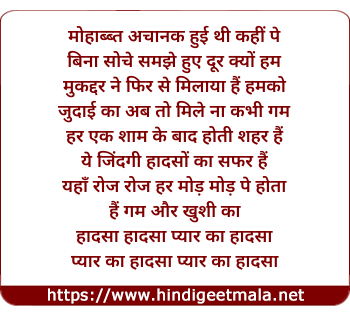 Lyrics of Pyaar Ka Haadsaa - प्यार का हादसा