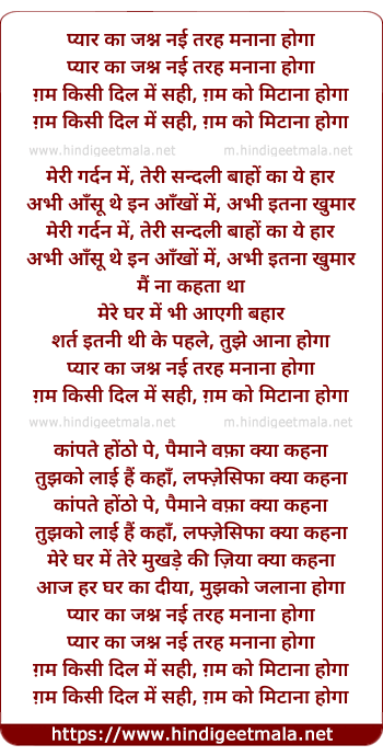 Lyrics of Pyaar Ka Jashn - प्यार का जश्न नई तरह मनाना होगा