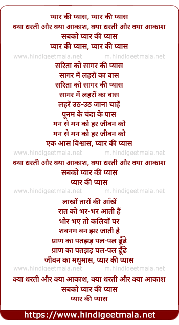 Lyrics of Pyar Kee Pyas, Pyar Kee Pyas - प्यार की प्यास, प्यार की प्यास