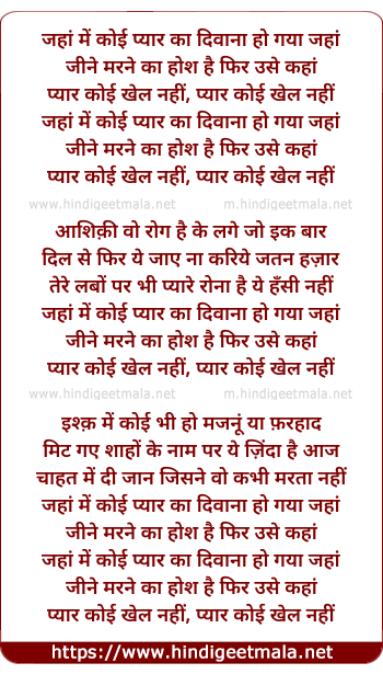 Lyrics of Jahaan Me Koi Pyar Ka Diwana Ho Gya Jaha - जहां में कोई प्यार का दिवाना हो गया जहाँ