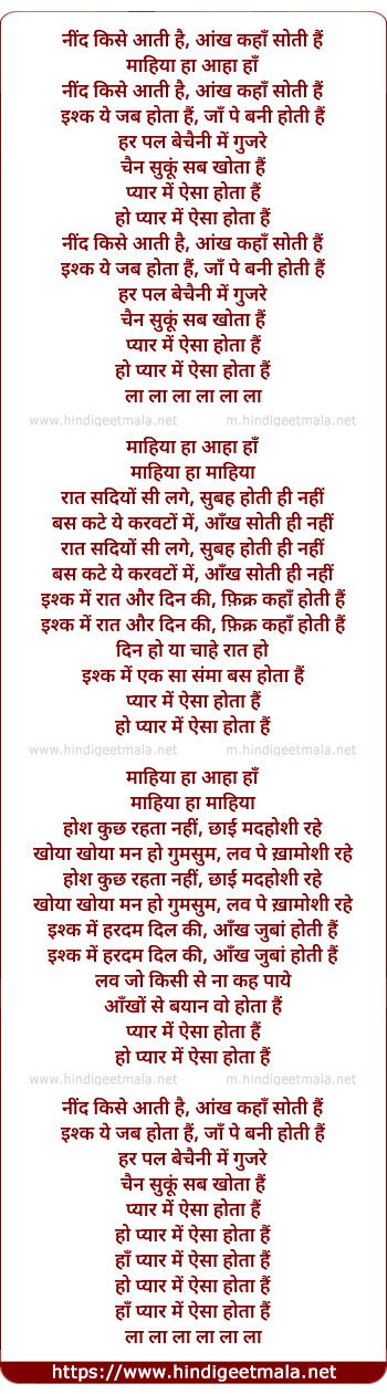 Poetic Translation - Lyrics of Pyaar Me Aisa Hota Hai (Ii) - नींद किसे आती है, आंख कहाँ सोती हैं