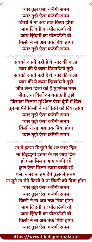 Lyrics of Pyaar Tujhe Aisa - प्यार तुझे ऐसा