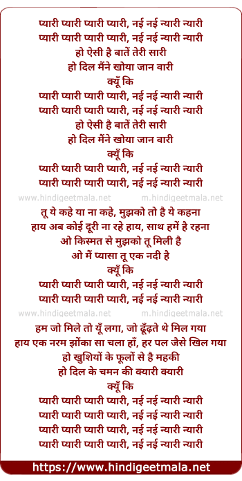 Lyrics of Pyaari Pyaari Nayi Nayi Nyaari Nyaari - प्यारी प्यारी नई नई न्यारी न्यारी