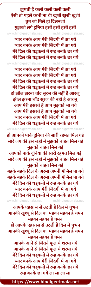 Lyrics of Pyar Banke Aap Meri Zindagi Me - प्यार बनके आप मेरी जिंदगी में