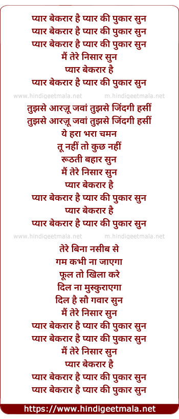 Poetic Translation - Lyrics of Pyar Bekarar Hai Pyar Ki Pukar Sun (Female) - प्यार बेकरार है प्यार की पुकार सुन