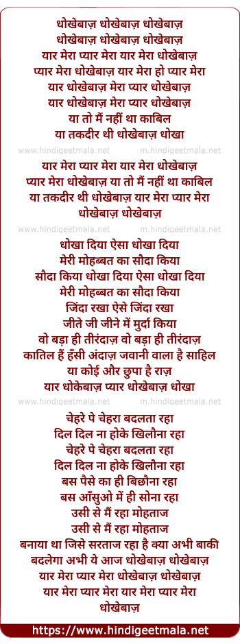 Lyrics of Yaar Dhokebaaz Mera Pyar Dhokebaaz - यार धोखेबाज़ मेरा प्यार धोखेबाज़