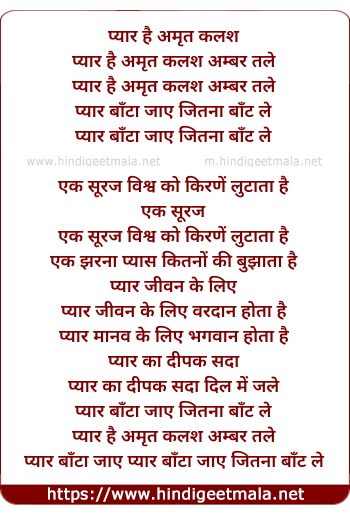 Lyrics of Pyar Hai Amrit Kalash - प्यार है अमृत कलश