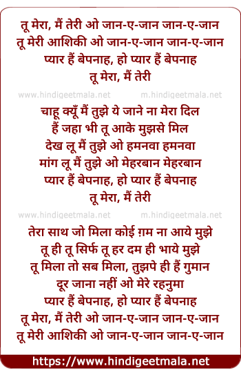 Lyrics of Pyar Hai Bepanah - तू मेरा, मैं तेरी ओ जान-ए-जान जान-ए-जान