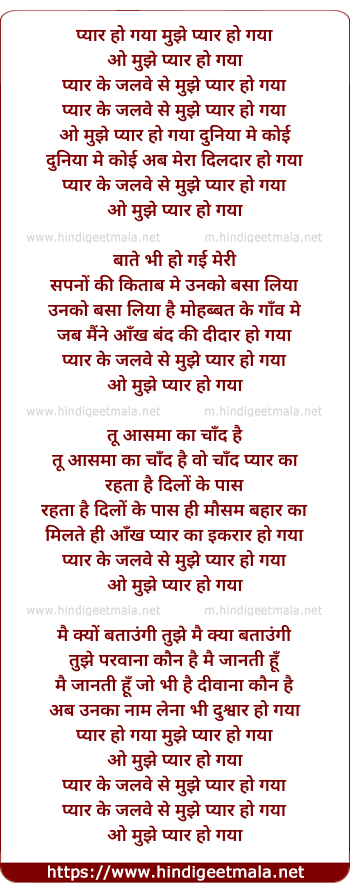 Lyrics of Pyar Ho Gaya Mujhe Pyar Ho Gaya - प्यार हो गया मुझे प्यार हो गया