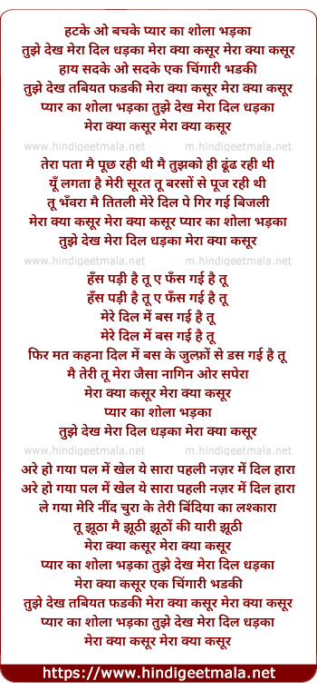 tuhje dekh mera dil dhadka mera kya kasur mera kya kasur