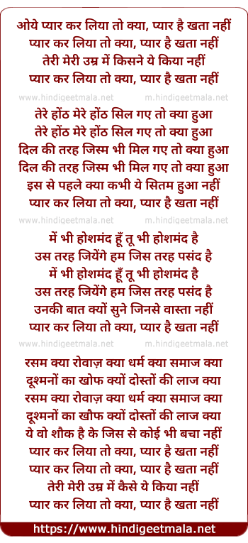 Lyrics of Pyar Kar Liya To Kya - प्यार कर लिया तो क्या