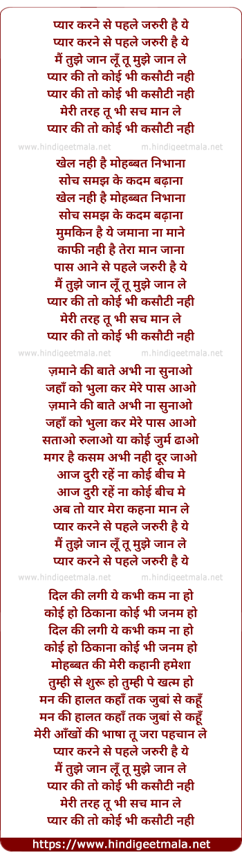 Lyrics of Pyar Karne Se Pehle Jaruri Hai Ye - प्यार करने से पहले जरुरी है ये