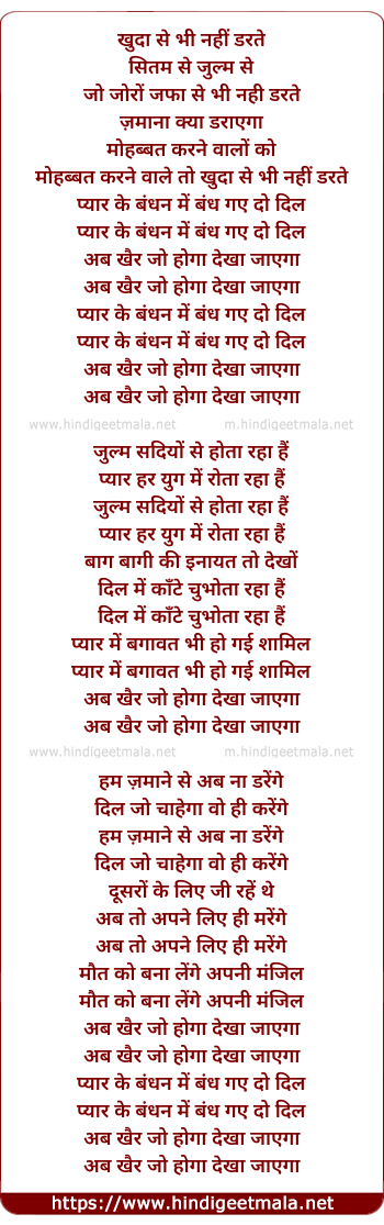 Lyrics of Pyar Ki Bandhan Me Band Gaye Do Dil - प्यार के बंधन में बंध गए दो दिल