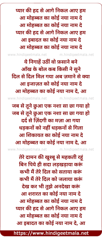 Lyrics of Pyar Ki Had Se Aage Nikal Aaye Hum - प्यार की हद से आगे निकल आए हम