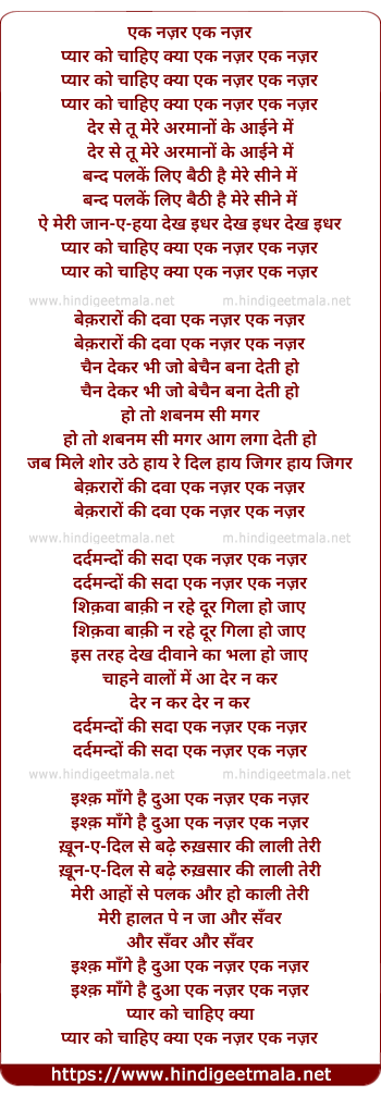 Lyrics of Pyar Ko Chahiye Kya Ek Najar - प्यार को चाहिए क्या एक नज़र