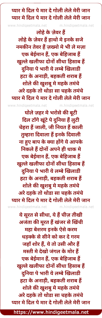 Lyrics of Pyar Me Dil Pe Maar De Goli - प्यार मे दिल पे मार दे गोली