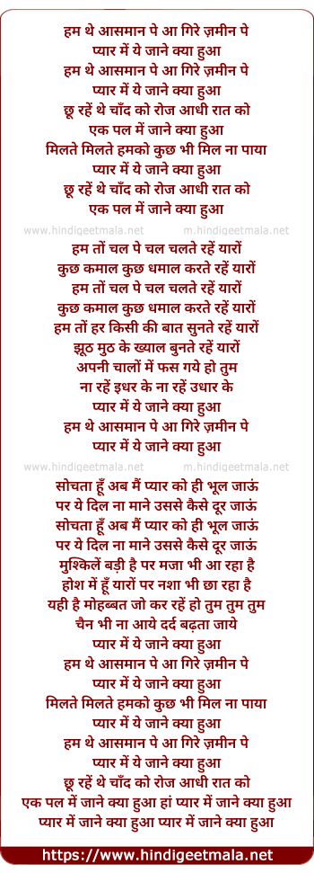 Lyrics of Pyar Mein Yeh Jaane Kya Huaan - प्यार में ये जाने क्या हुआ